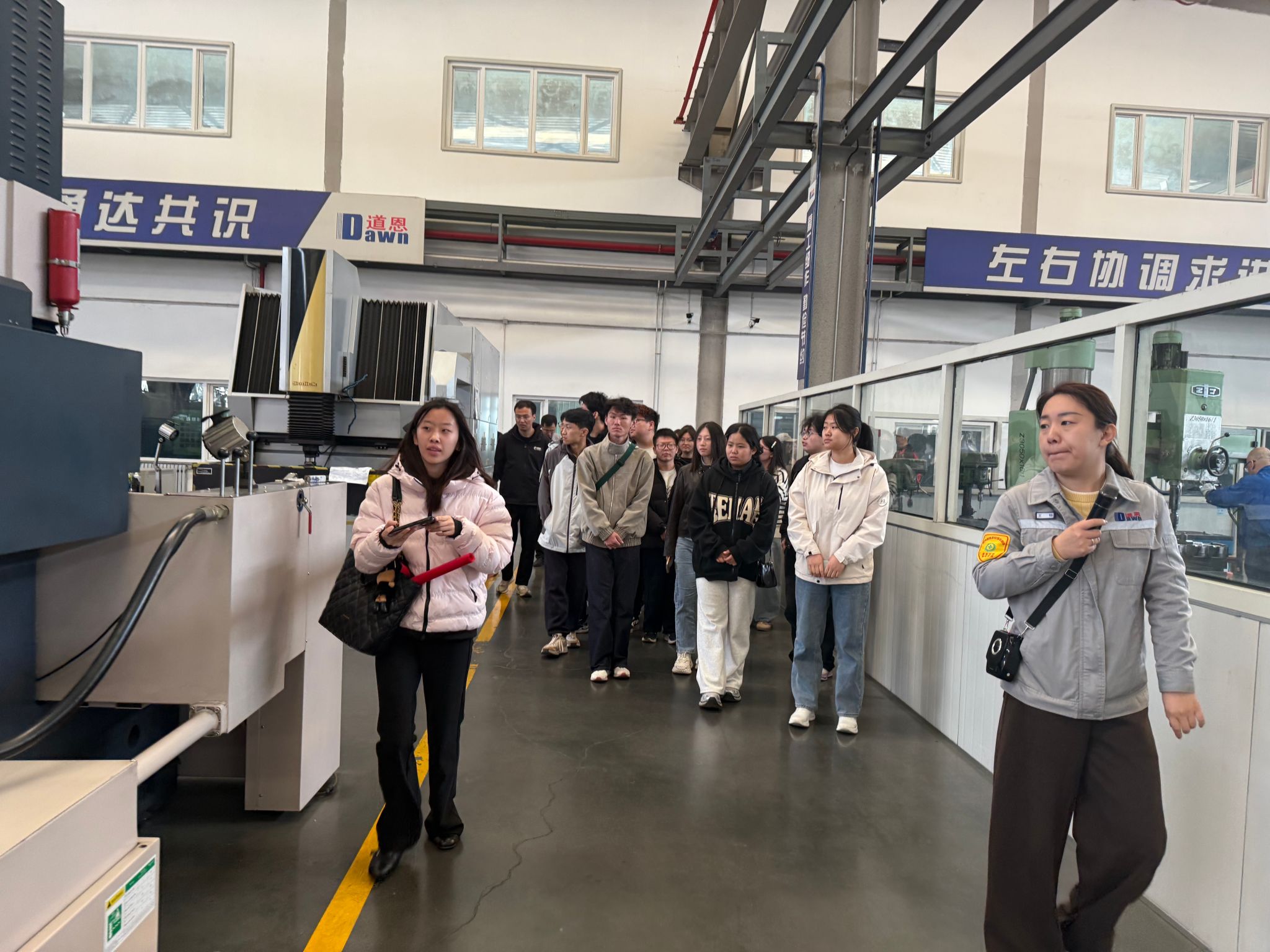 师生一行先后参观企业展厅、生产车间及职工宿舍,于展厅中深化行业认知,在车间内明晰岗位要求,从宿舍里感受企业关怀,归属感与认同感进一步增强。系部带队教师亦全程随行,围绕工匠班学生的实习安排、生活保障等事项与企业深入交流,并鼓励同学们珍惜工匠班这一产教融合平台,脚踏实地、精进技艺。活动结束后,同学们表示,此行所见所闻更加坚定了加入道恩集团的冲动与决心,今后更当加倍努力、精益求精,不负校企双方的悉心培养与殷切期望。
