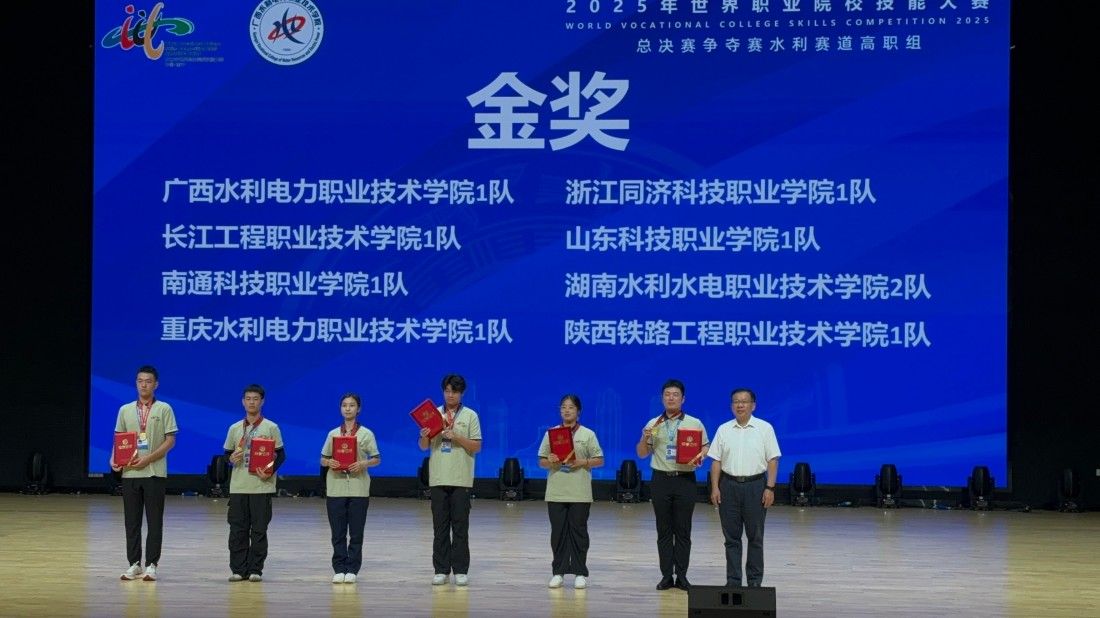 8月26日,水利赛道争夺赛于广西水利电力职业技术学院落幕,全国80支代表队、312名选手参与角逐。山东科技职业学院生物与化学工程系学生李佳怡、陈鹏鹏、迟宝妍在张建明、陈义群老师的指导下,凭借扎实的专业功底、稳定的现场发挥和出色的团队协作,勇夺金奖。